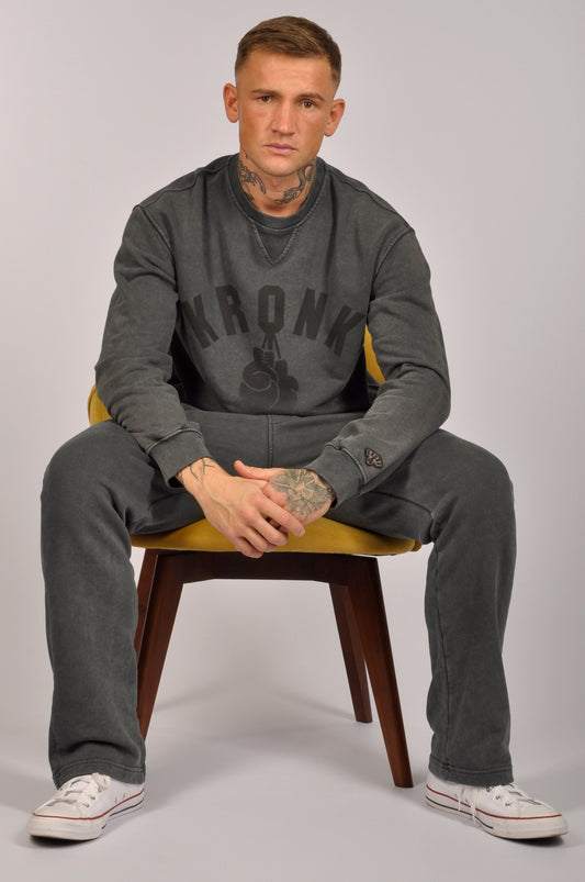 KRONK Faded Gloves Vintage Wash Sweatshirt Loose Fit Charcoal