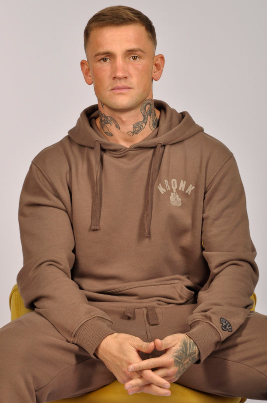 KRONK Faded Gloves Vintage Wash Hoodie Loose Fit Dark Brown