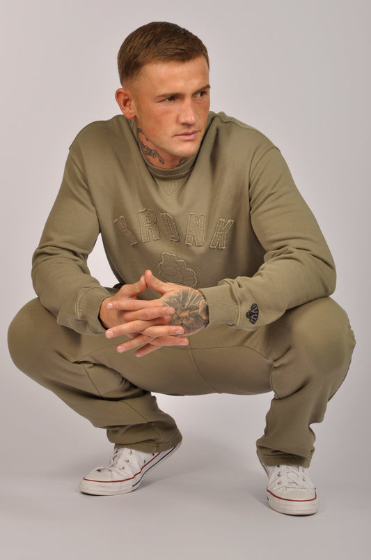 KRONK One Colour Gloves Raw Edge Applique Vintage Wash Sweatshirt Khaki