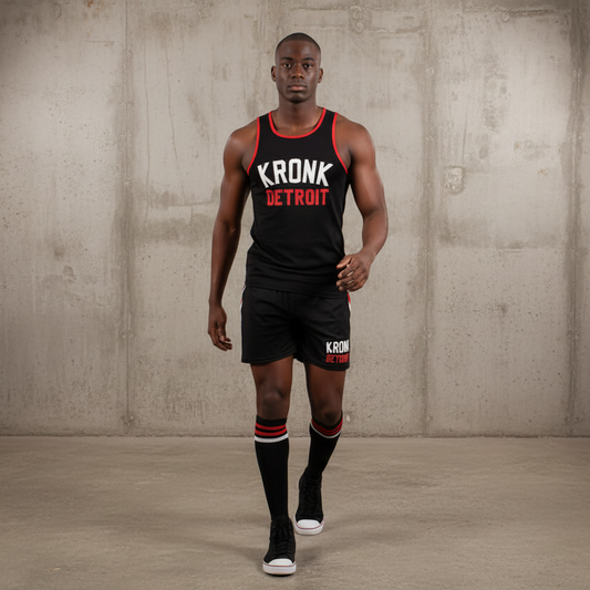 KRONK Iconic Detroit Applique Training Gym Vest Black with red & white logo