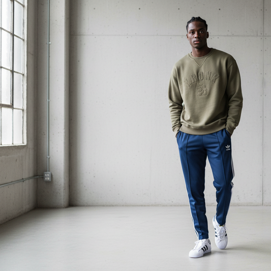 KRONK Detroit Chain Stitch Loose Fit Joggers Navy/Sky