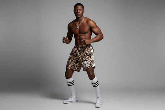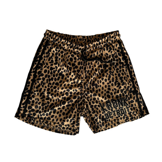 KRONK Iconic Detroit Applique Lined Gym Shorts Leopard Print Black
