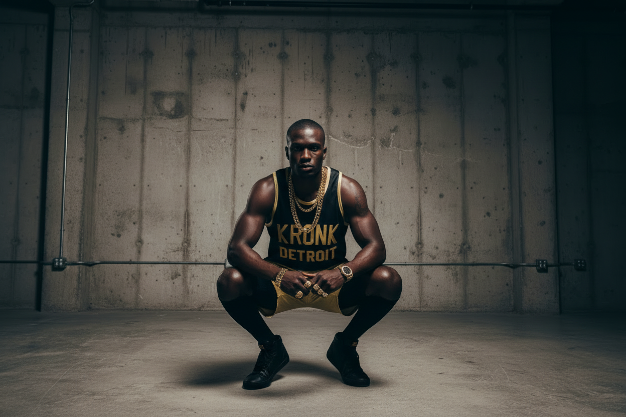 KRONK Iconic Detroit Applique Training Gym Vest Black & Gold