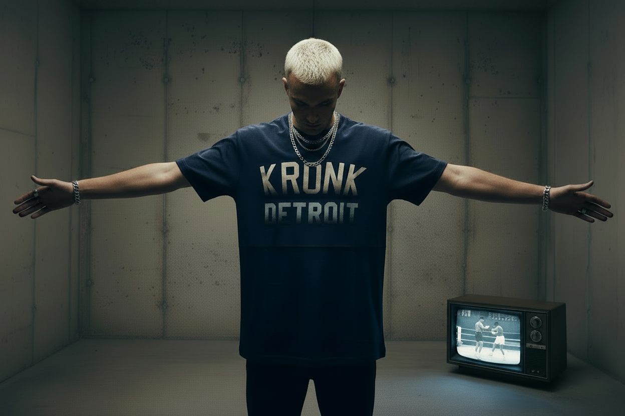 KRONK Faded Iconic Detroit Vintage Wash Hoodie Loose Fit Charcoal