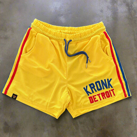 KRONK Iconic Detroit Applique Lined Shorts Yellow
