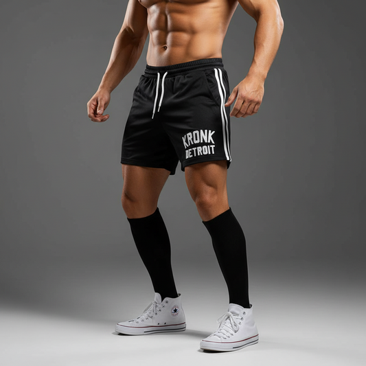 KRONK Iconic Detroit Applique Lined Shorts Black Stealth
