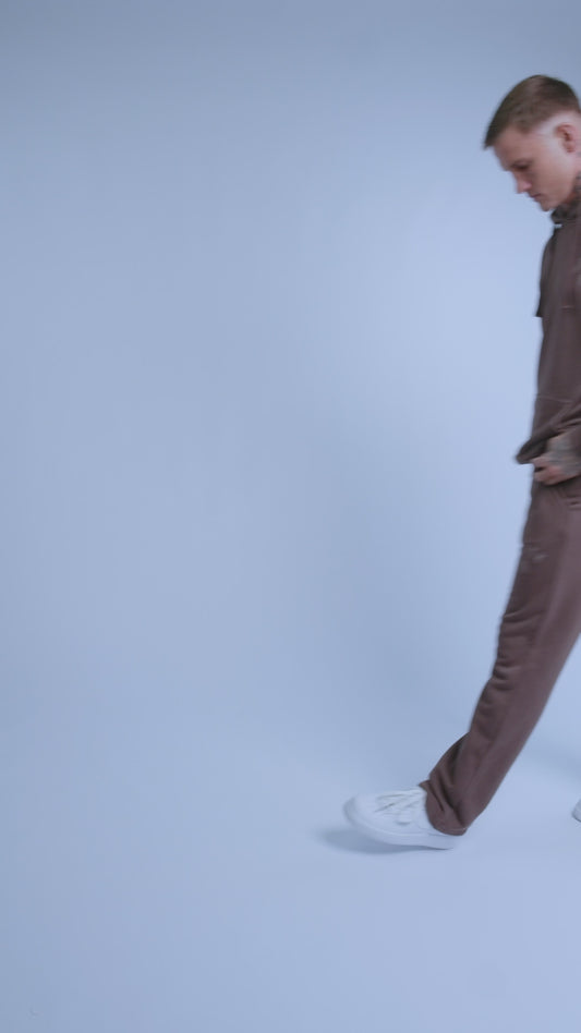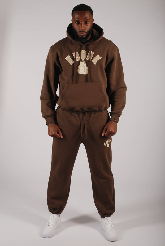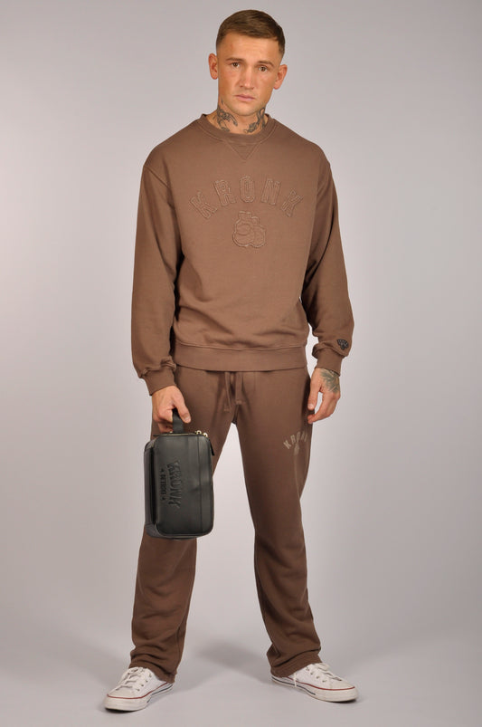 KRONK Faded Gloves Vintage wash Straight Leg Joggers Loose Fit Dark Brown