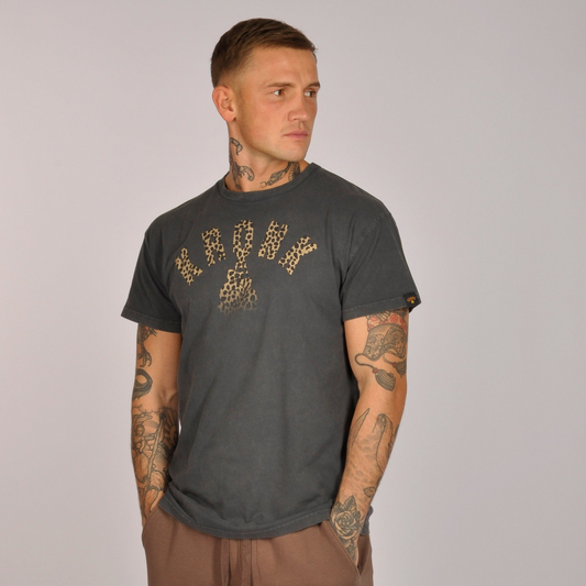 KRONK Faded Leopard Gloves Loose Fit Vintage Wash T Shirt Charcoal