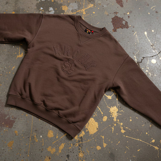 KRONK One Colour Gloves Raw Edge Applique Vintage Wash Sweatshirt Dark Brown