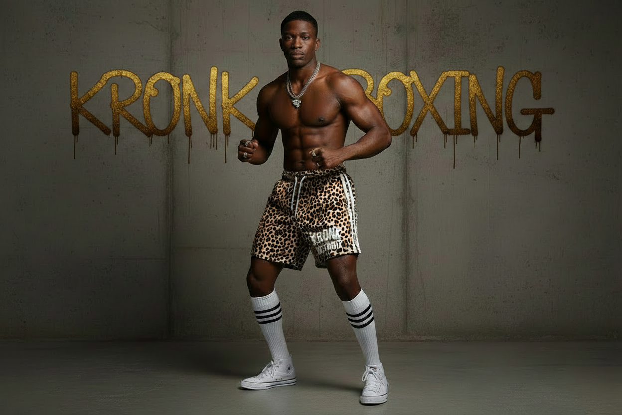 KRONK Iconic Detroit Applique Lined Gym Shorts Leopard Print Black