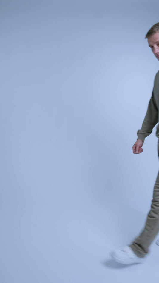 KRONK One Colour Gloves Raw Edge Applique Vintage Wash Sweatshirt Khaki