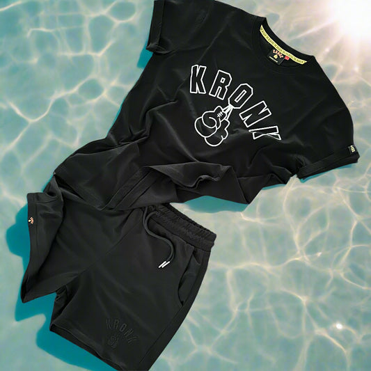 KRONK One Colour Gloves Applique Lined Gym Shorts Black Stealth