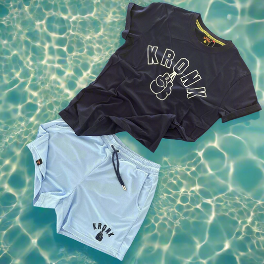 KRONK One Colour Gloves Applique Lined Gym Shorts Sky and Navy