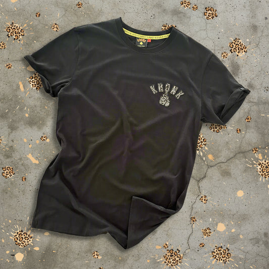 KRONK Leopard Gloves Slim Fit Cotton T Shirt Black