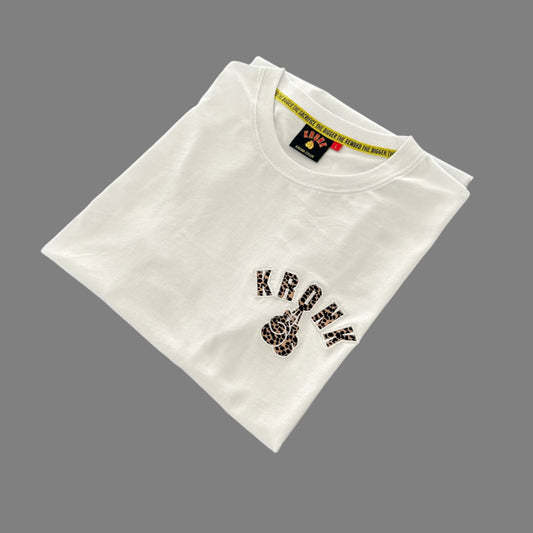 KRONK Leopard Gloves Slim Fit Cotton T Shirt White