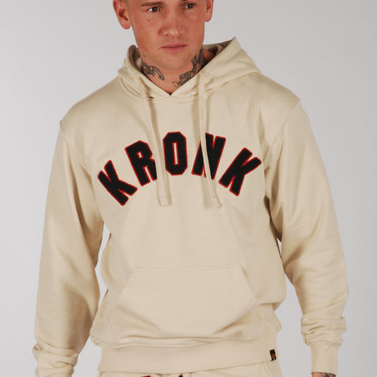 KRONK Boxing Team Towelling Applique Hoodie Loose Fit Dark Brown