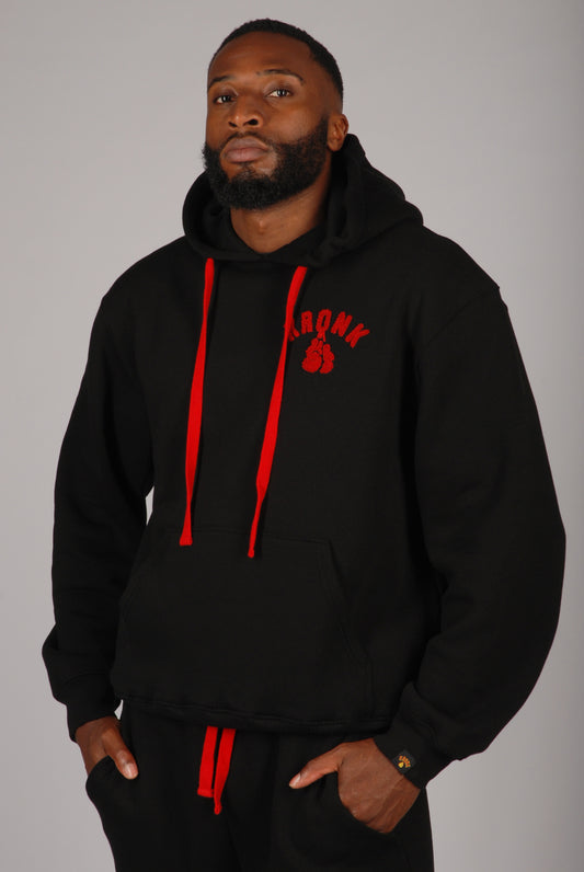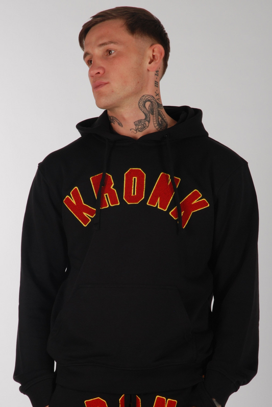 KRONK Boxing Team Towelling Applique Hoodie Loose Fit Black