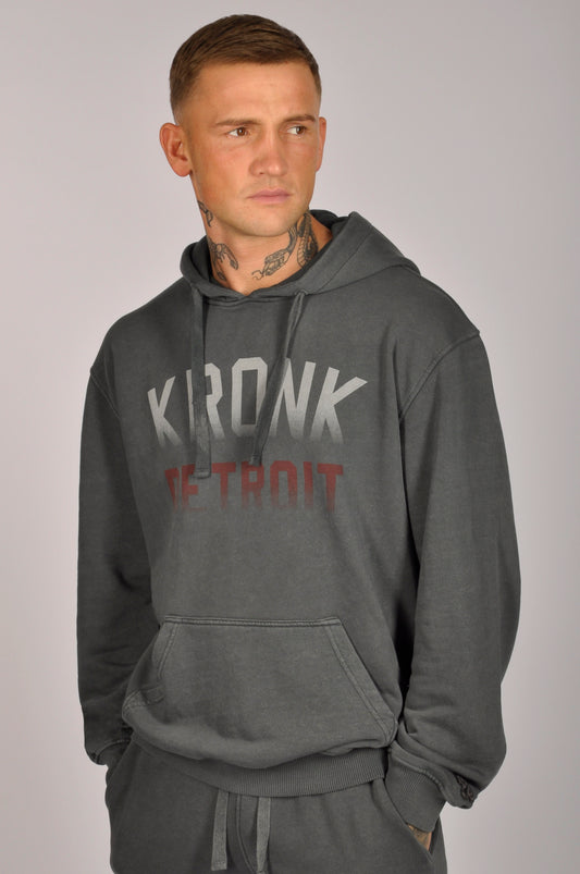 KRONK Faded Iconic Detroit Vintage Wash Hoodie Loose Fit Charcoal