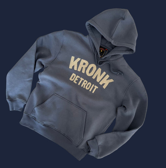 KRONK Detroit Chain Stitch Loose Fit Hoodie Steel Blue
