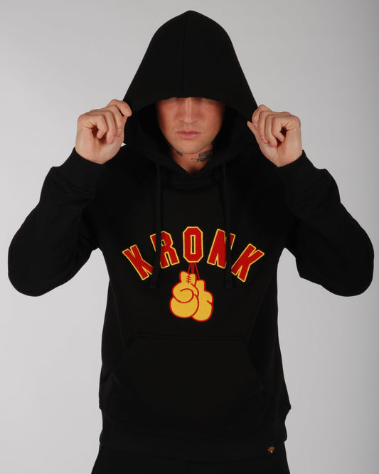 KRONK Boxing Team Towelling Applique Hoodie Loose Fit Black