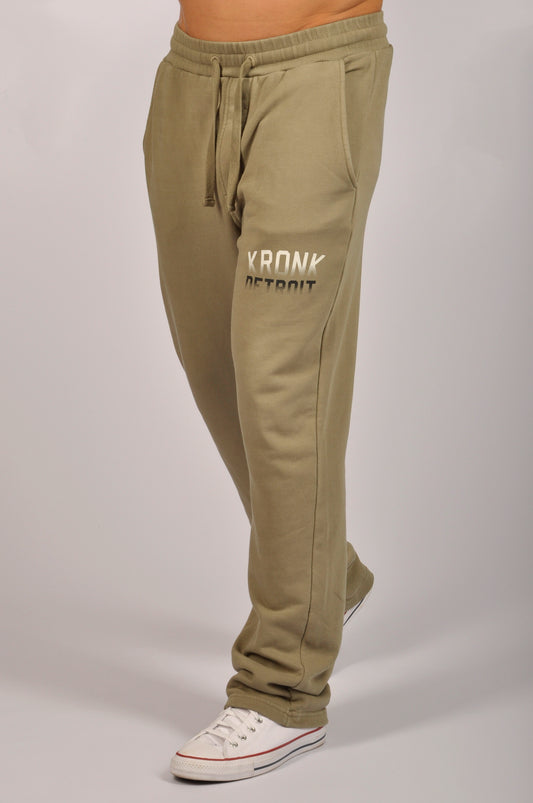 KRONK Faded Iconic Detroit Vintage wash Straight Leg Joggers Loose Fit Khaki