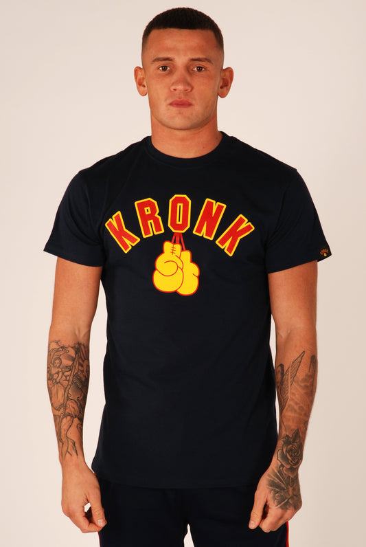 KRONK Detroit Regular Fit T Shirt Navy with Sky Blue logo