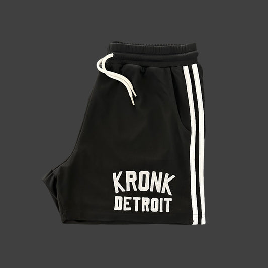 KRONK Iconic Detroit Applique Lined Shorts Black & White