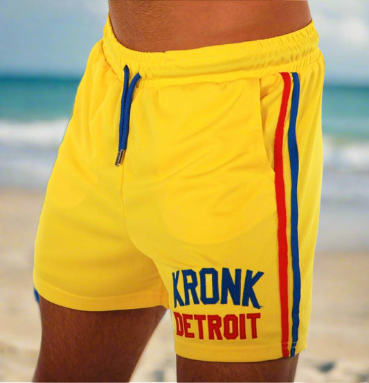 KRONK Iconic Detroit Applique Lined Shorts Yellow