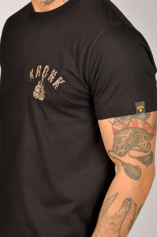 KRONK Leopard Gloves Slim Fit Cotton T Shirt Black