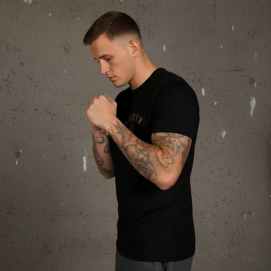 KRONK Outline Gloves Slim Fit Cotton T Shirt Black & Charcoal