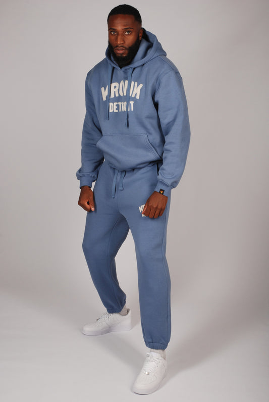 KRONK Detroit Chain Stitch Loose Fit Joggers Steel Blue