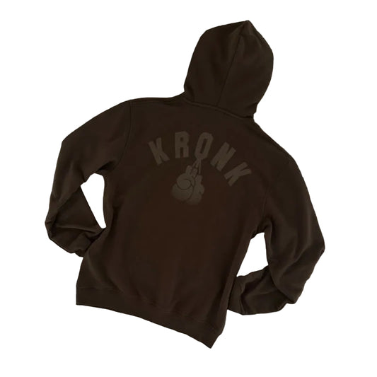 KRONK Faded Gloves Vintage Wash Hoodie Loose Fit Dark Brown