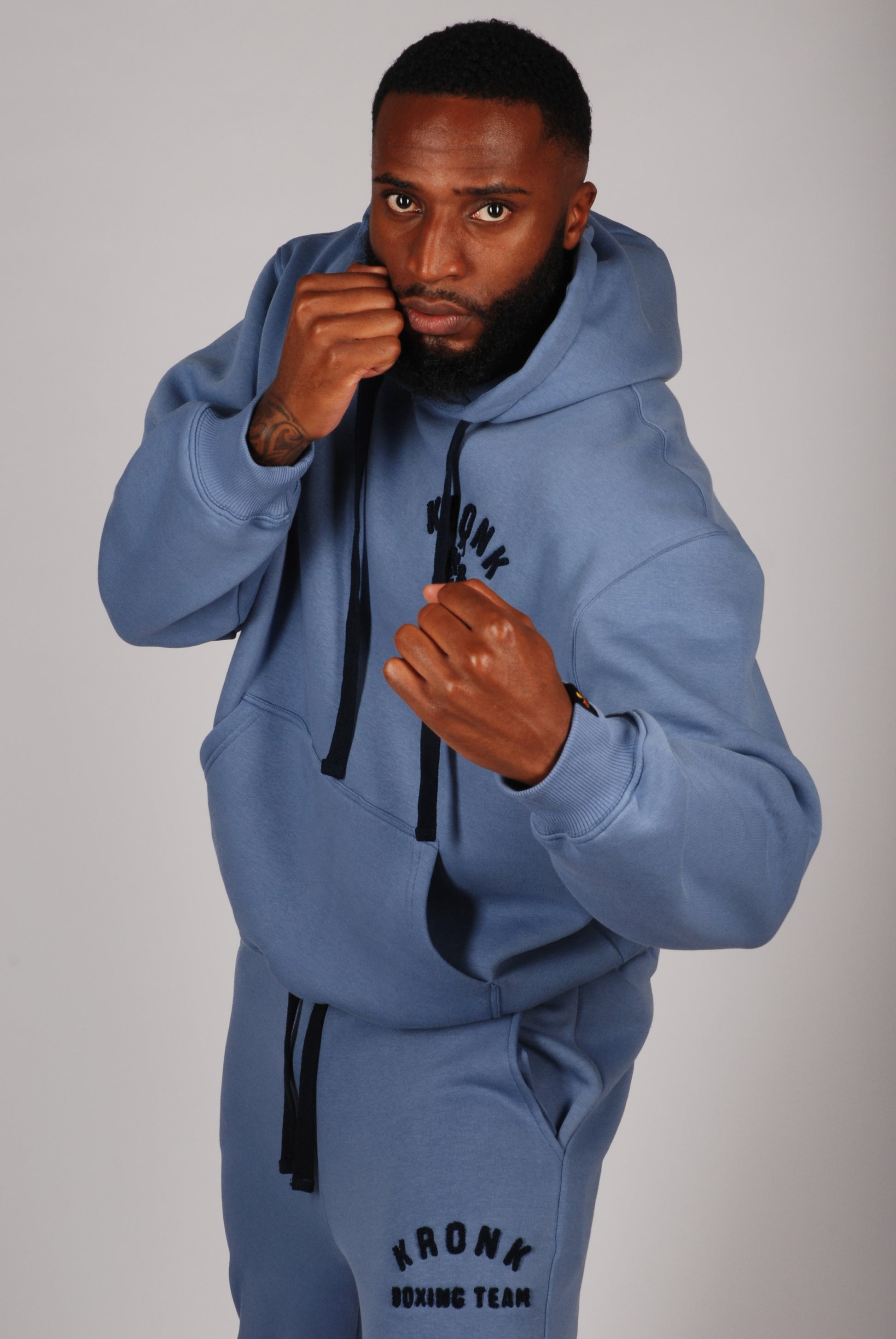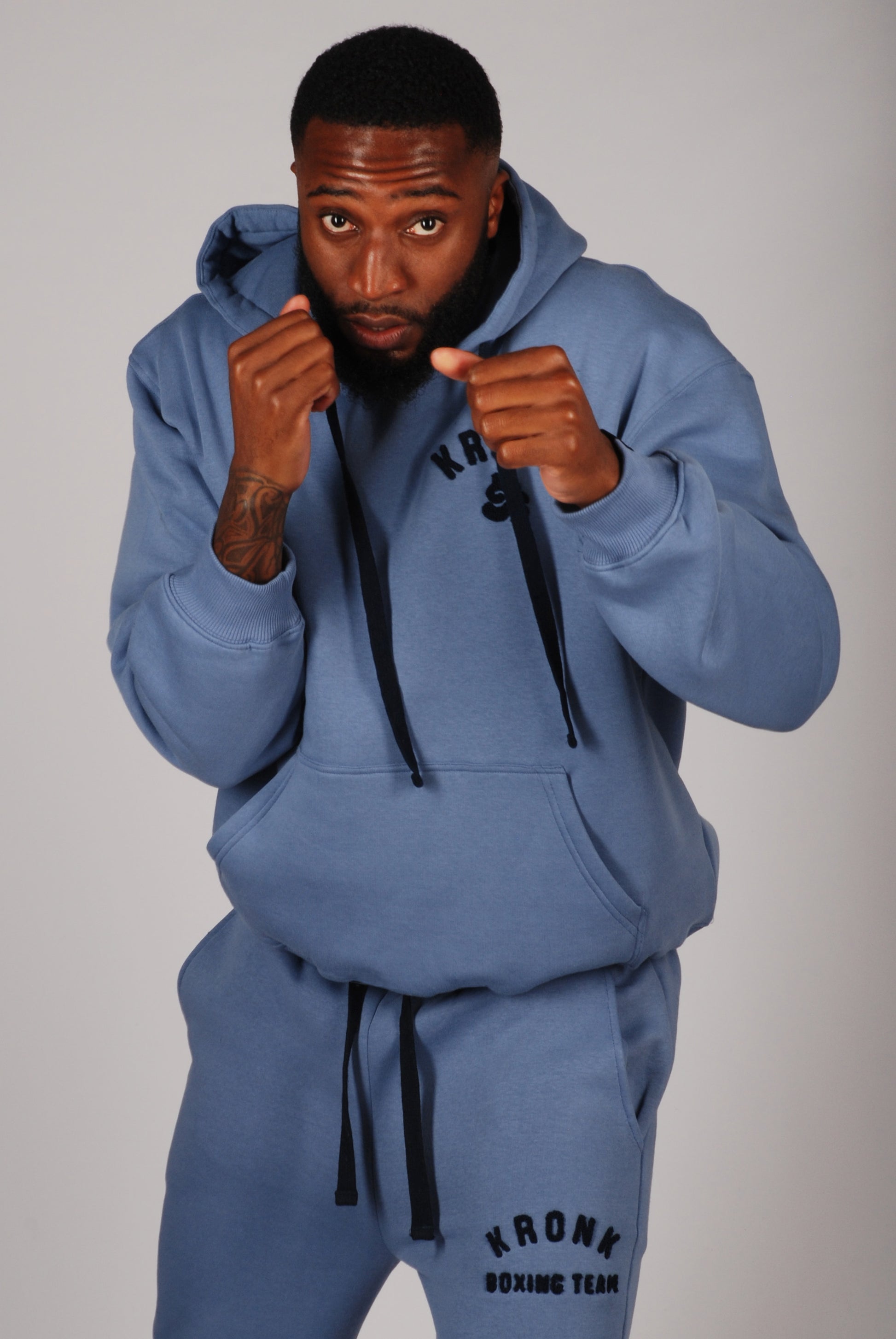 KRONK Boxing Team Towelling Applique Hoodie Loose Fit Steel Blue
