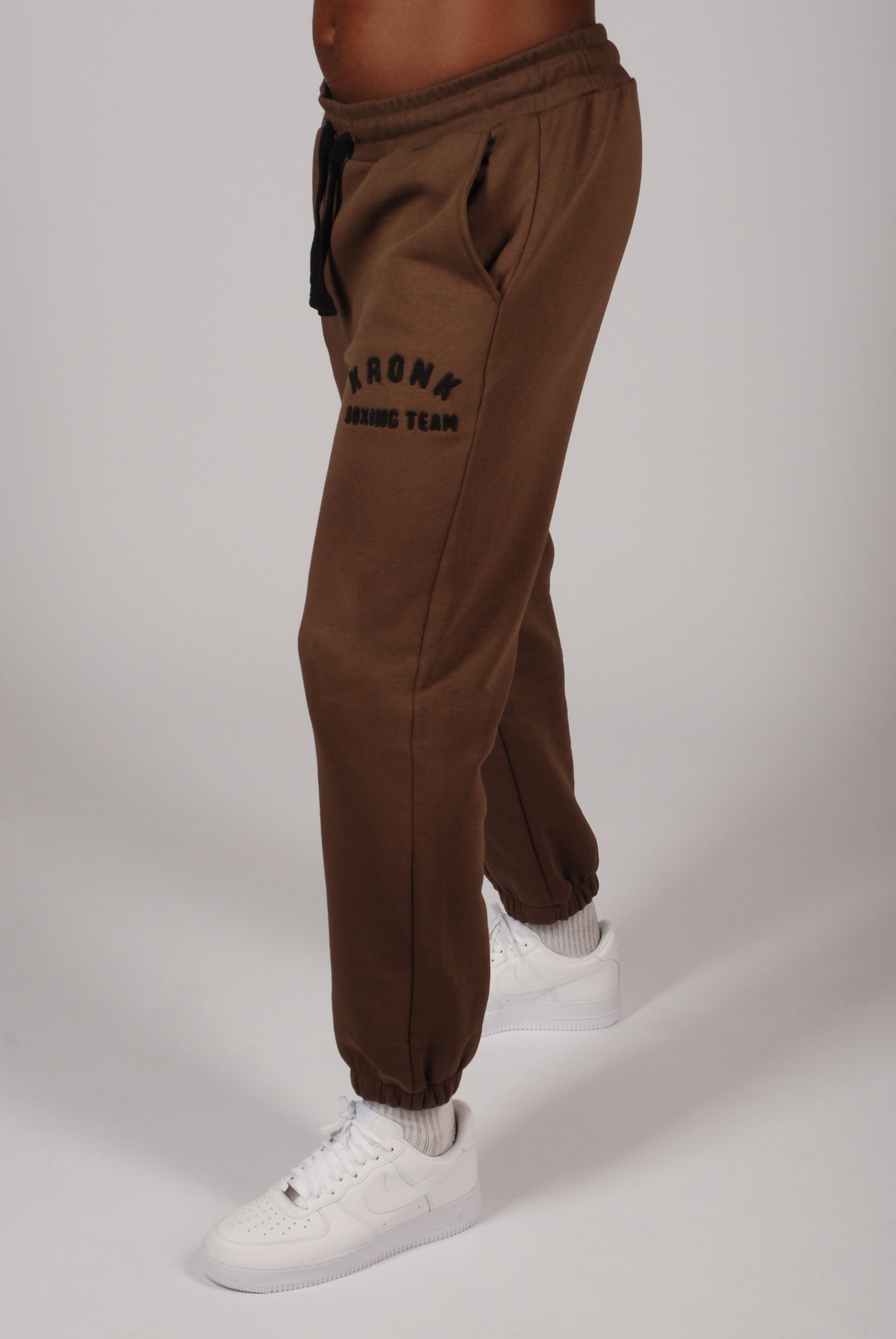 KRONK Boxing Team Towelling Applique Joggers Loose Fit Dark Brown