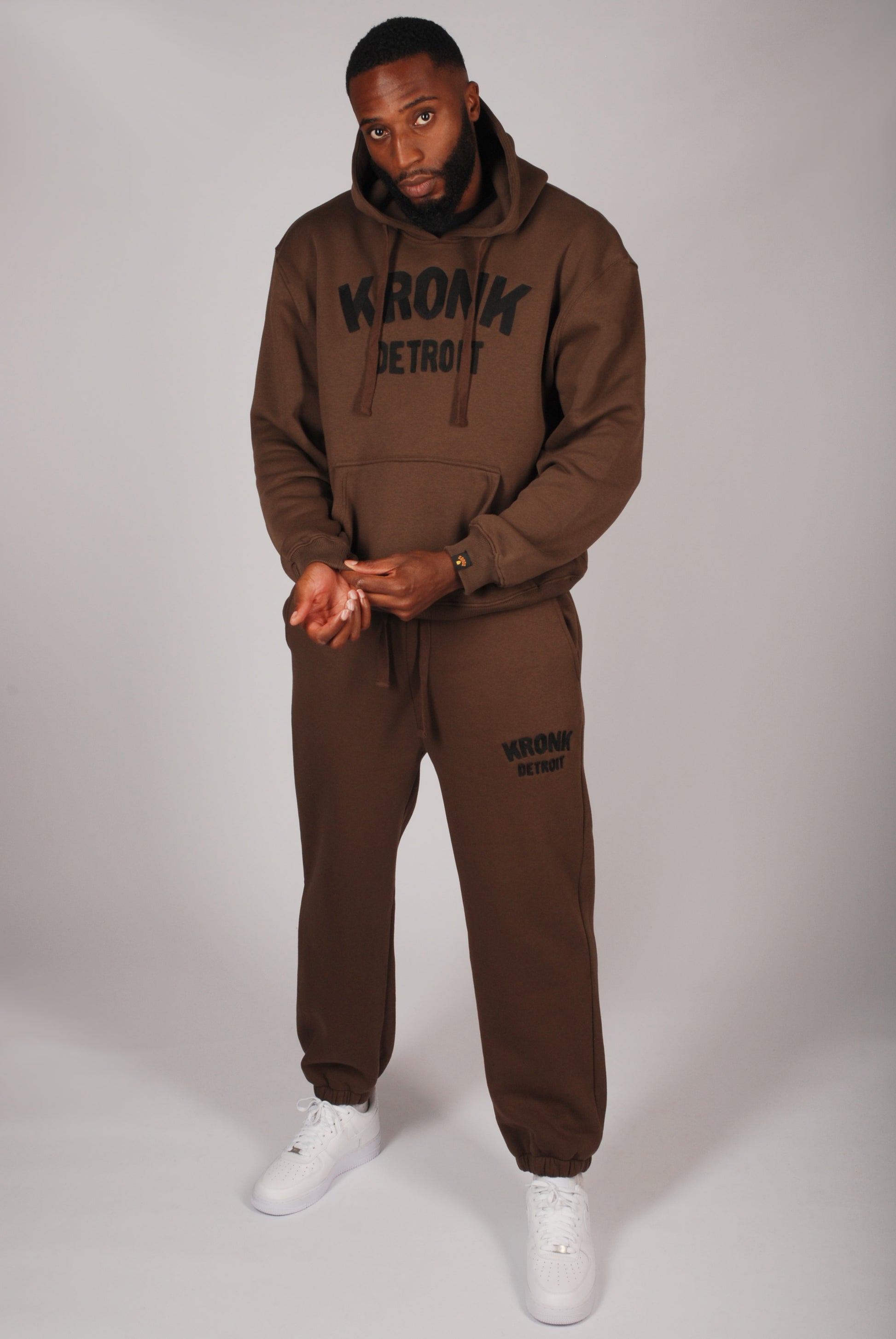 The KRONK Detroit Chain Stitch Hoodie is where authentic boxing heritage meets elevated streetwear. Crafted in a premium 300/320gsm cotton-poly blend, this hoodie features a double-layer hood, soft brushed interior, and a bold chain stitch Detroit appliqué across the front.