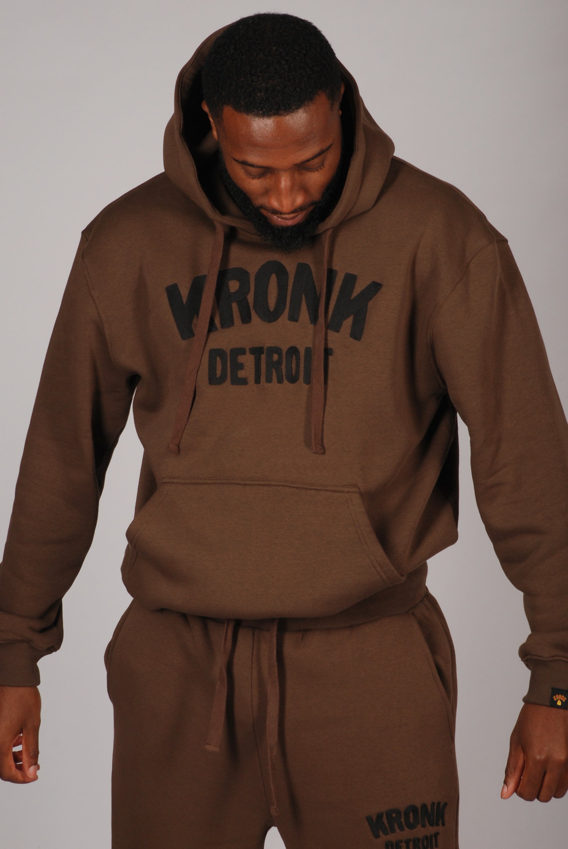 KRONK Detroit Chain Stitch Loose Fit Hoodie Dark Brown
