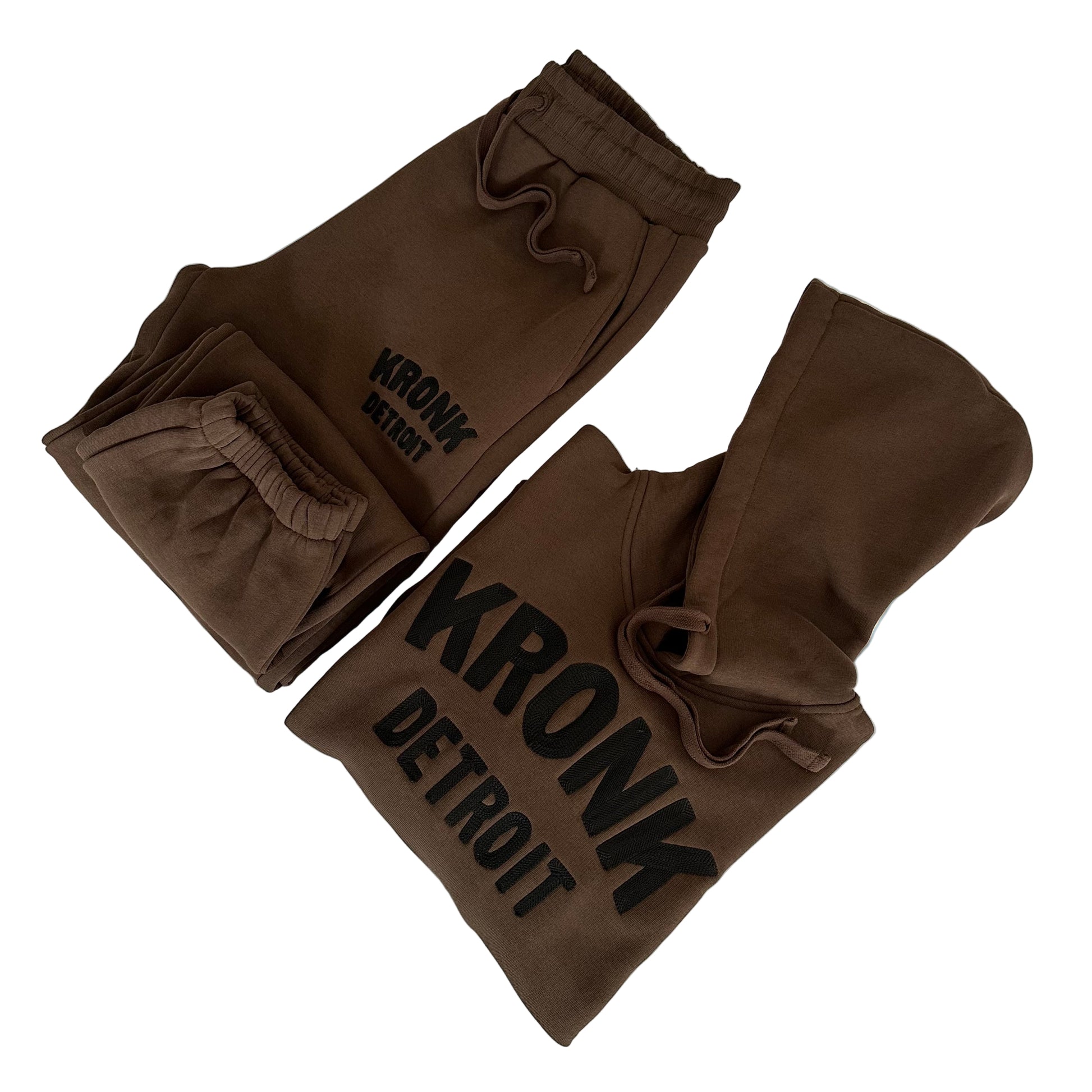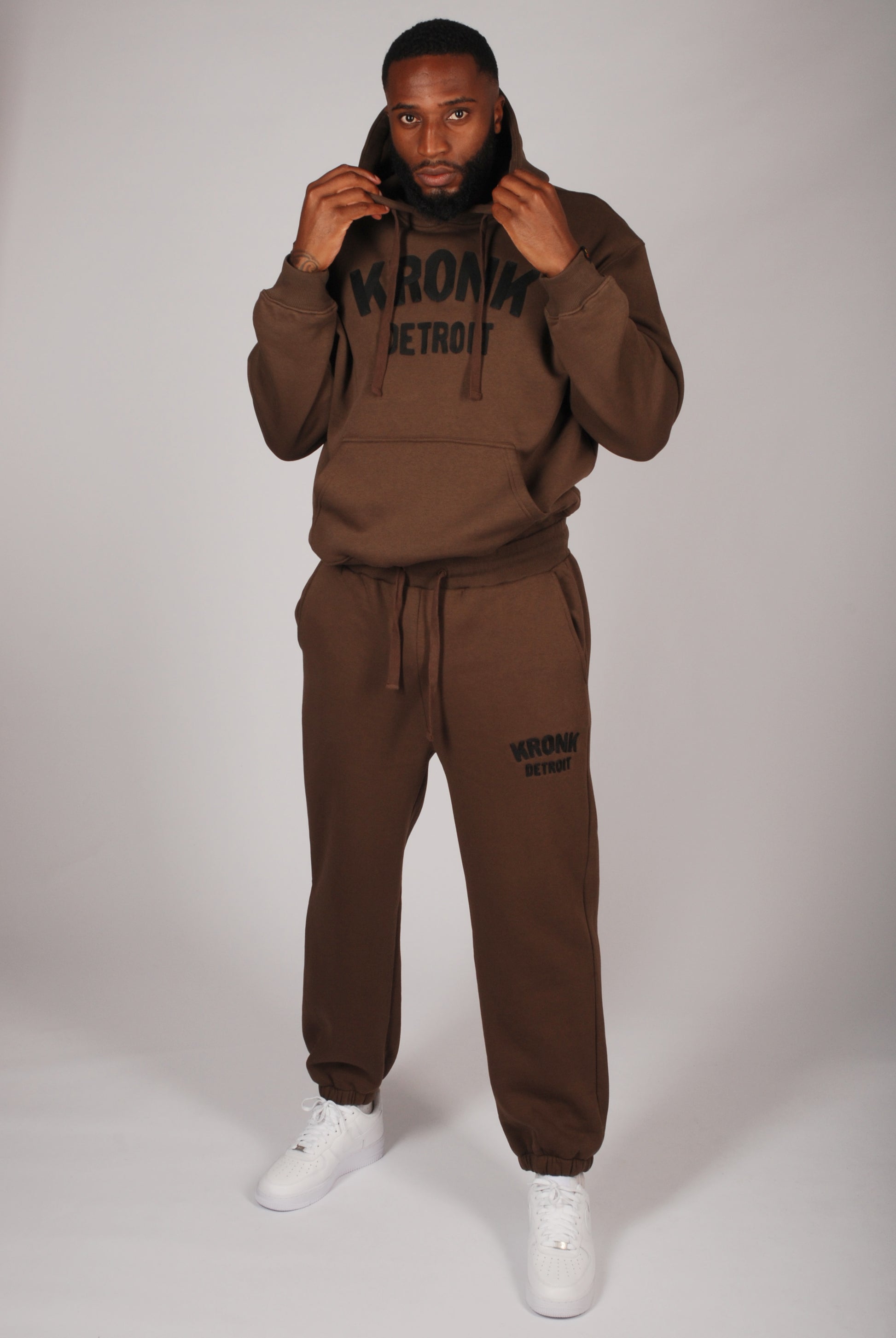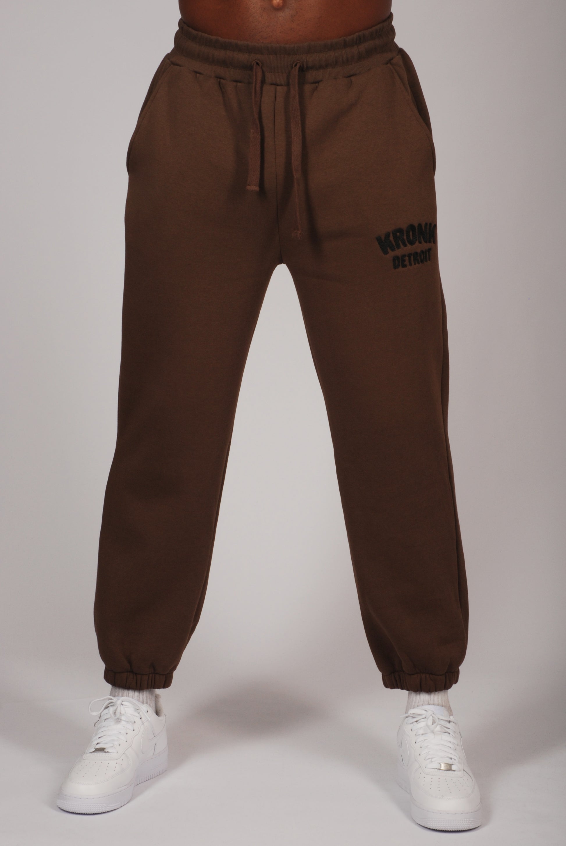 KRONK Detroit Chain Stitch Loose Fit Joggers Dark Brown