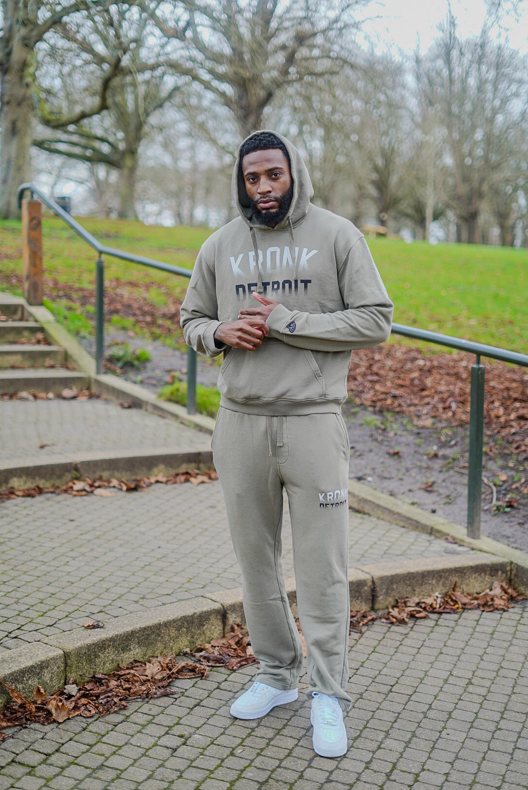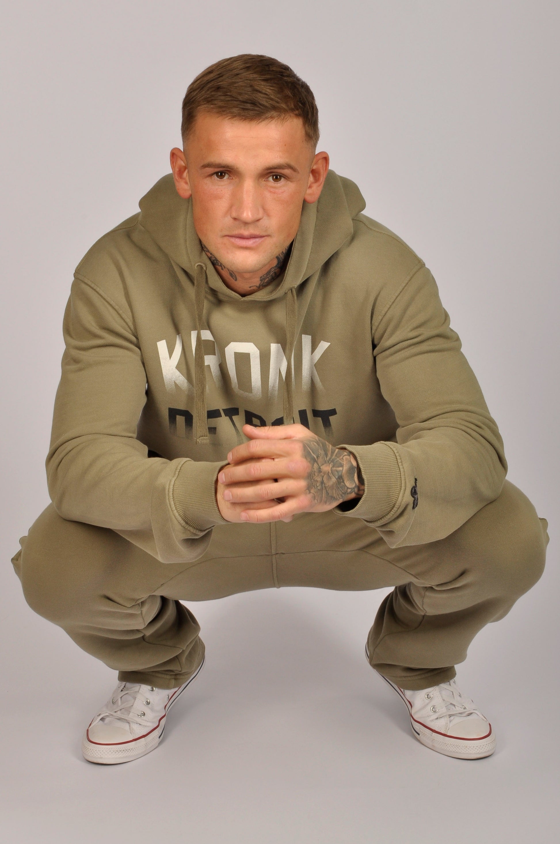KRONK Faded Iconic Detroit Vintage Wash Hoodie Loose Fit Khaki