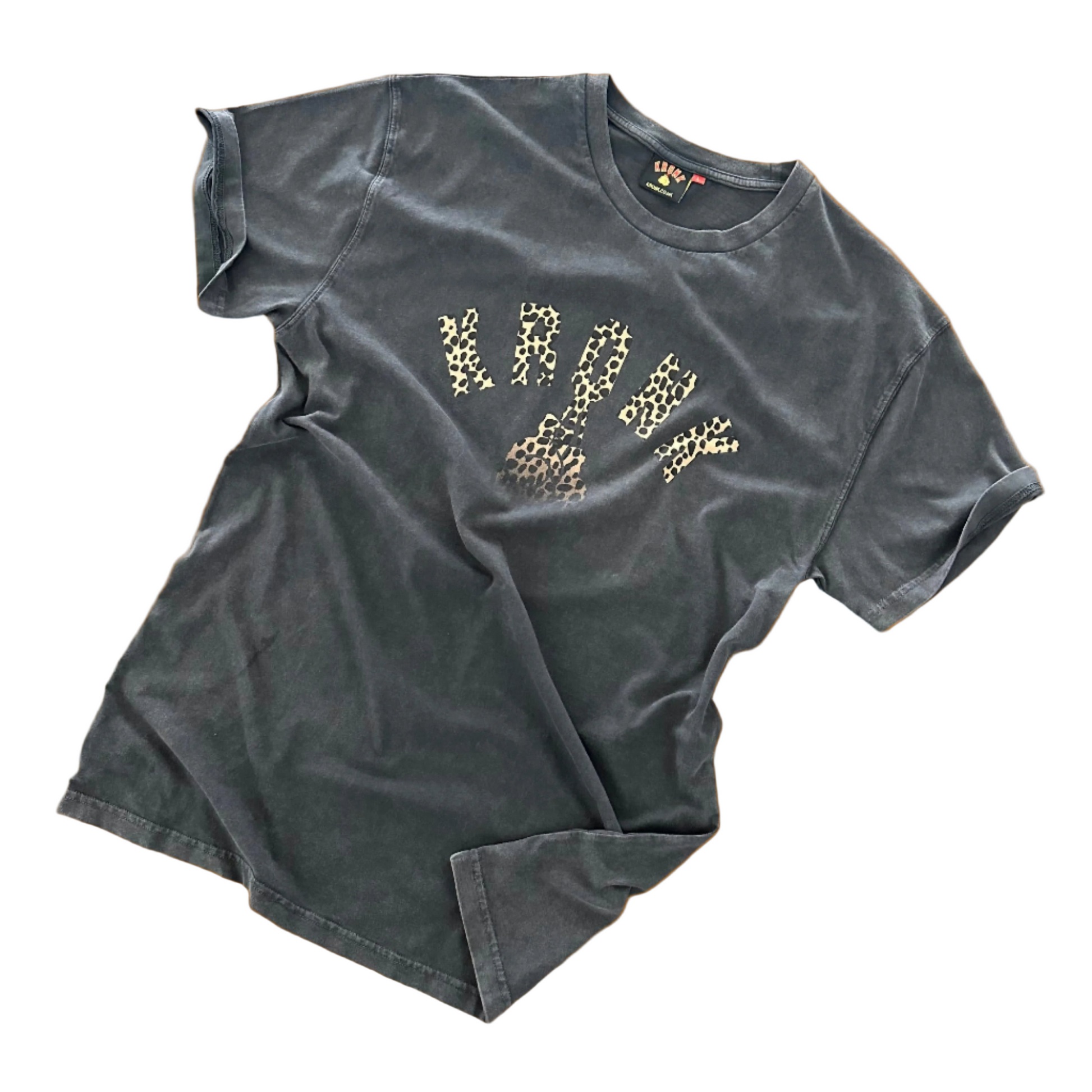 KRONK Faded Leopard Gloves Loose Fit Vintage Wash T Shirt Charcoal