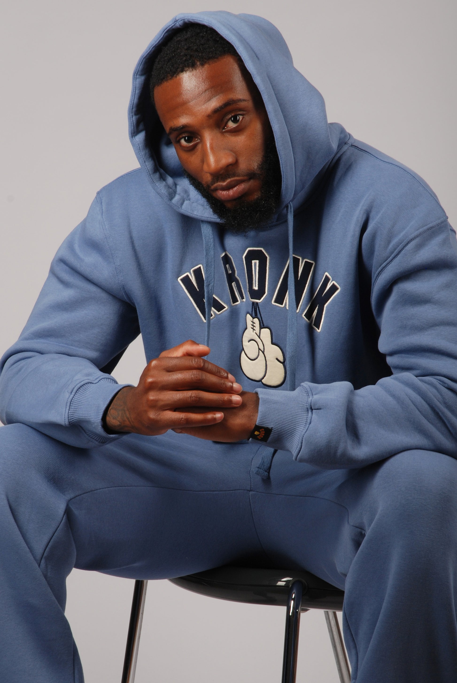 KRONK Gloves Applique Hoodie Loose Fit Steel Blue