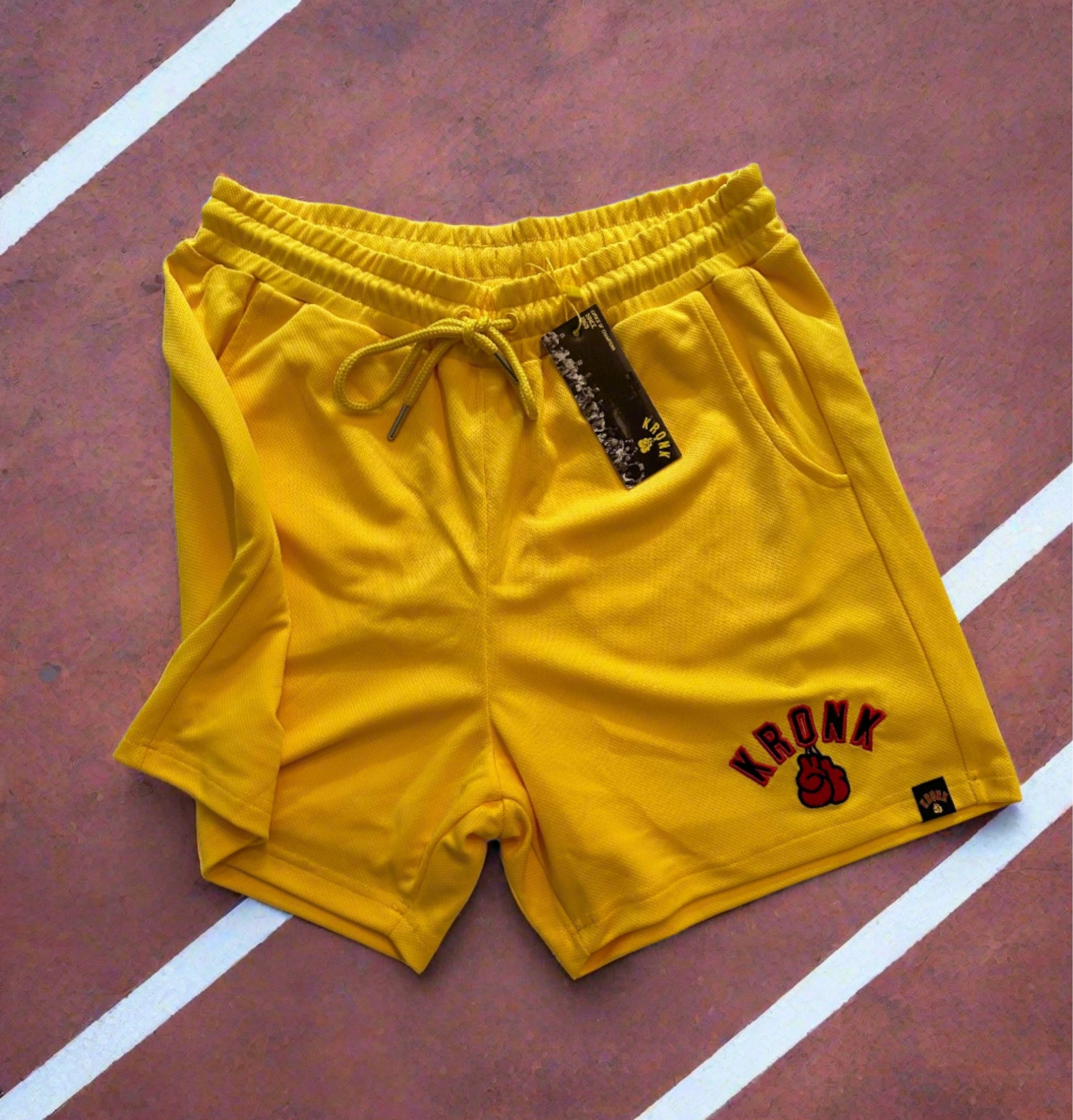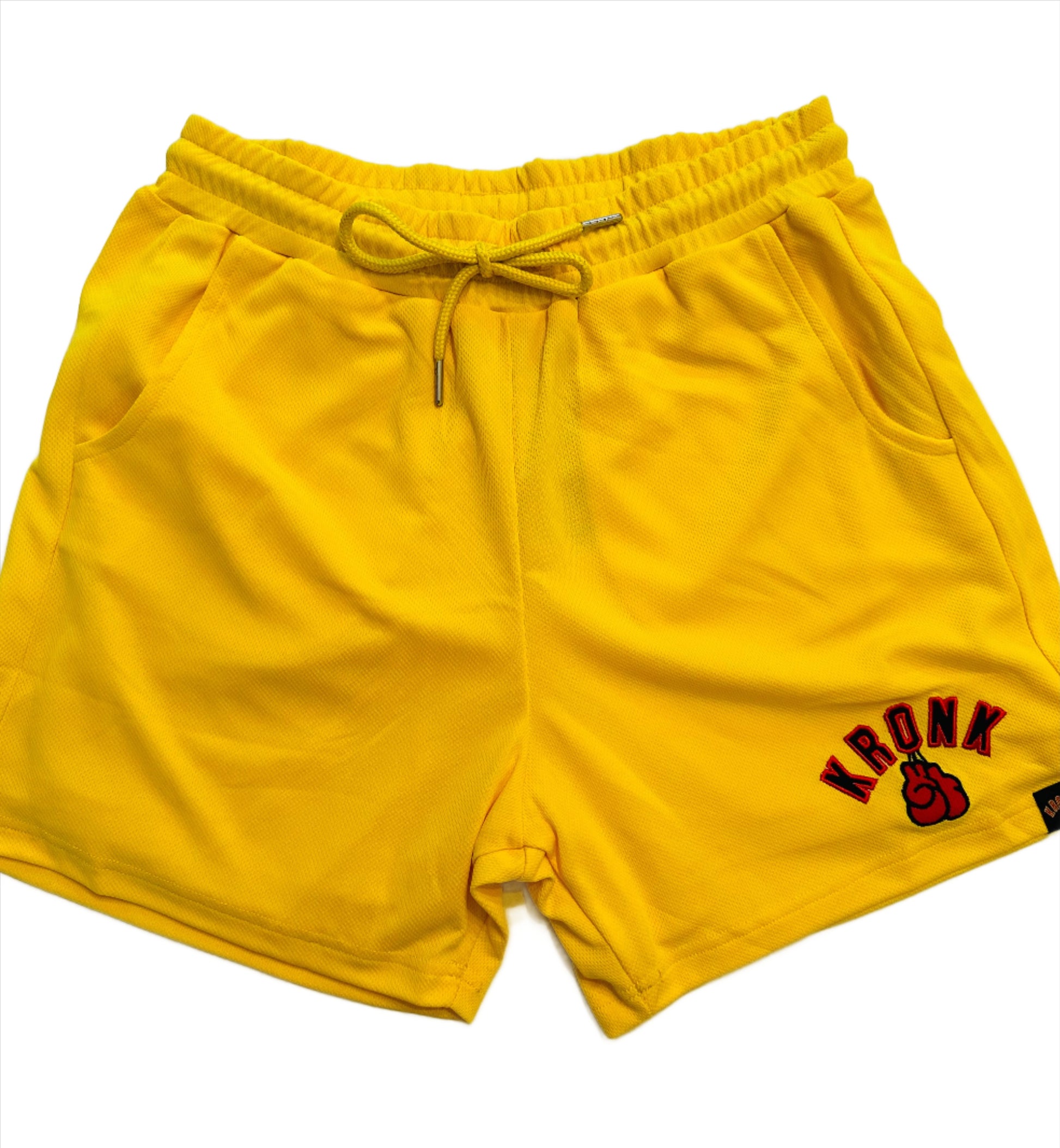 KRONK Gloves Applique Lined Gym Shorts Yellow