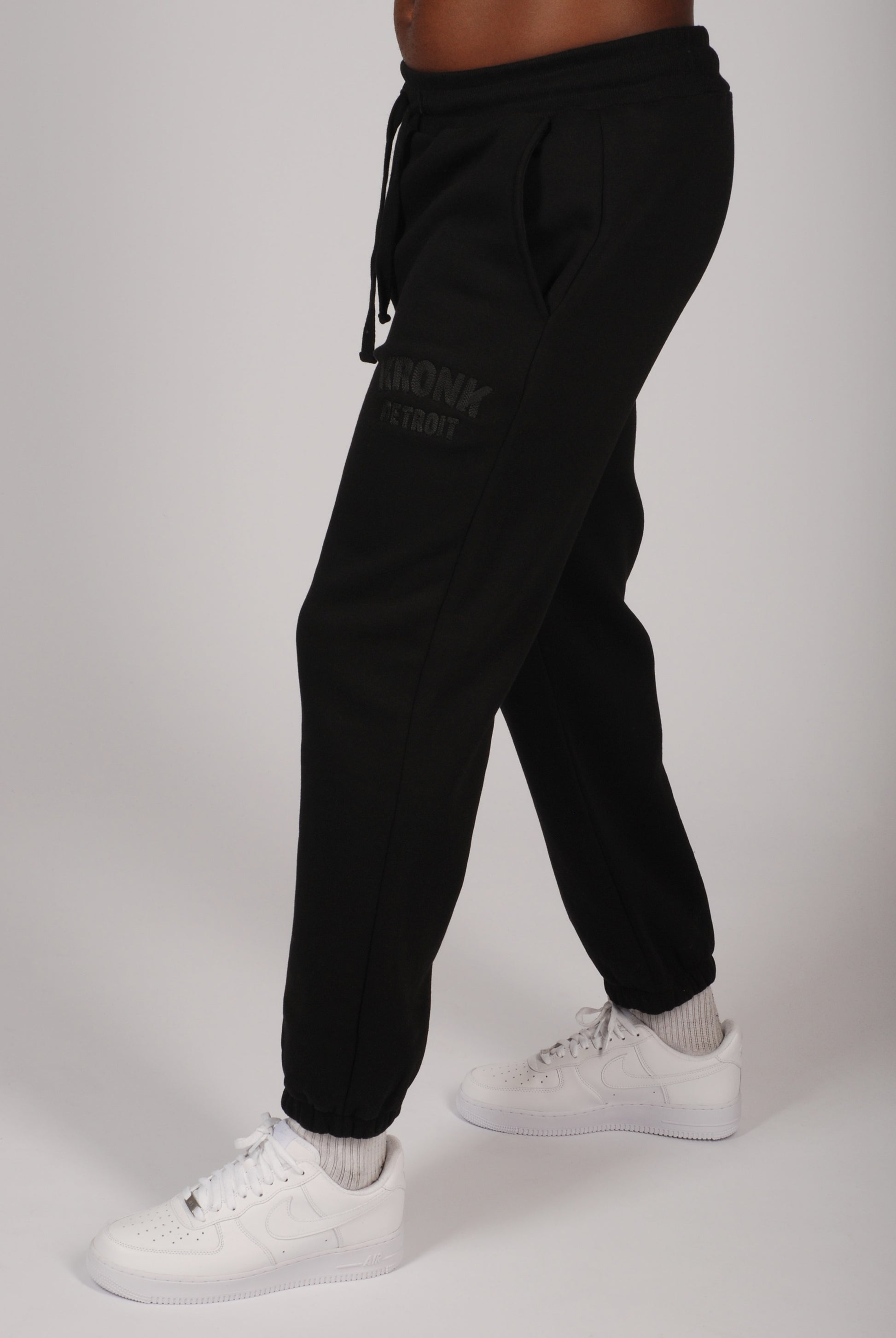 KRONK Detroit Chain Stitch Loose Fit Joggers Black Stealth