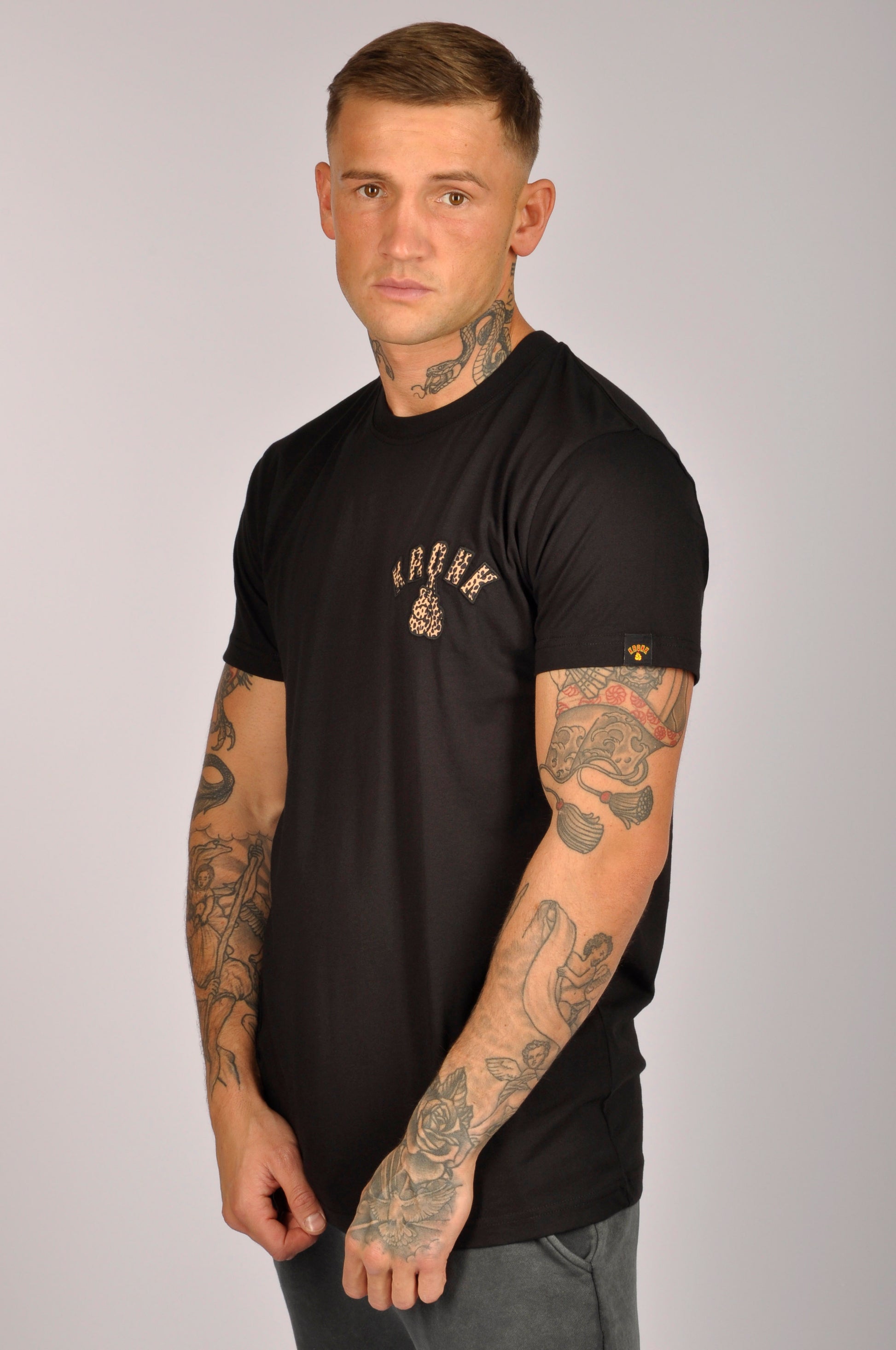 KRONK Leopard Gloves Slim Fit Cotton T Shirt Black