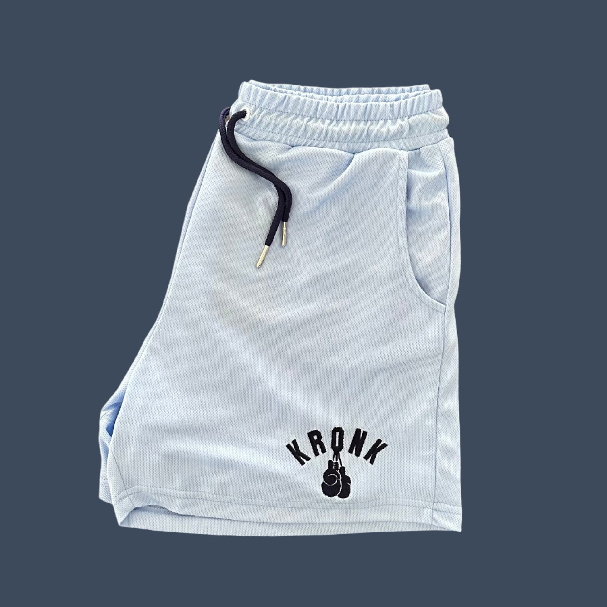 KRONK One Colour Gloves Applique Lined Gym Shorts Sky and Navy