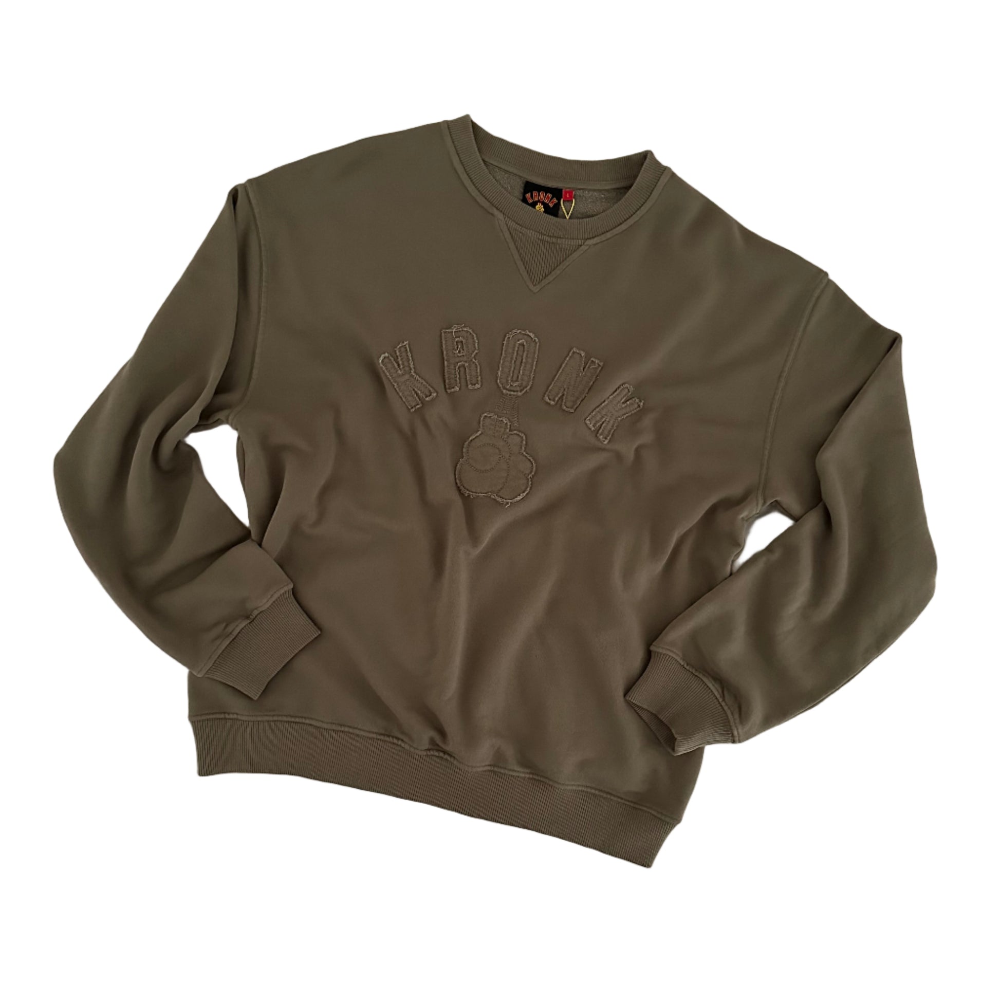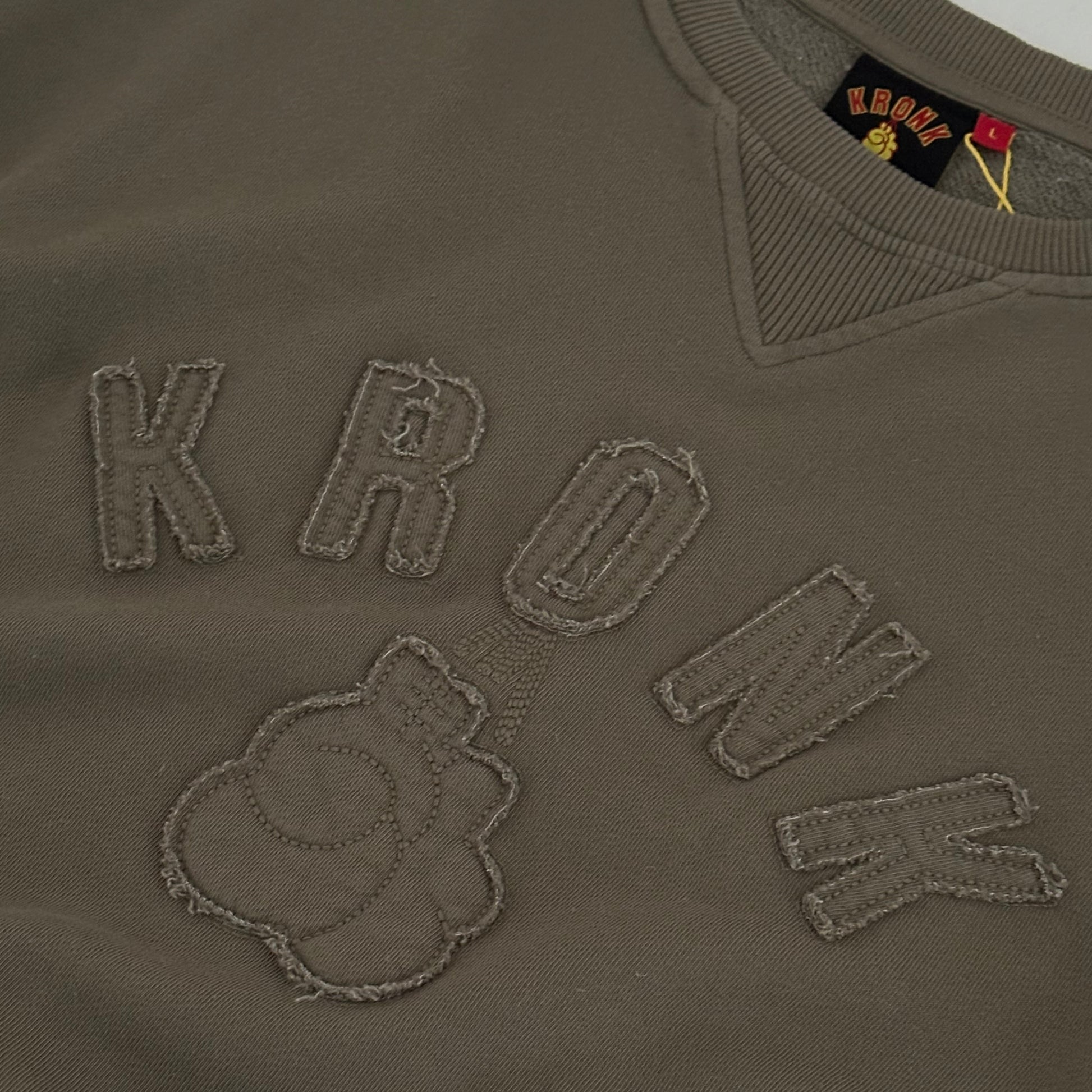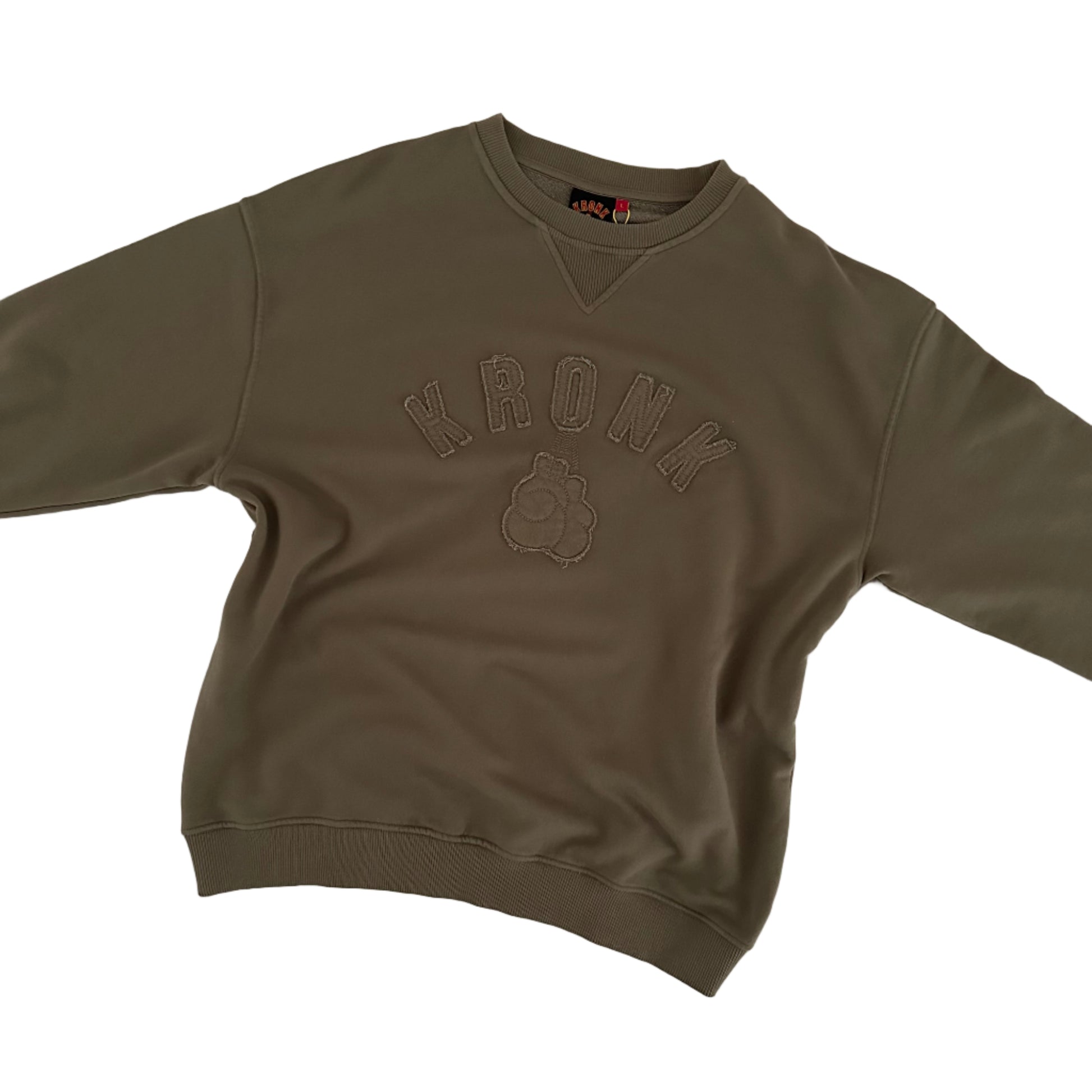 KRONK One Colour Gloves Raw Edge Applique Vintage Wash Sweatshirt Khaki