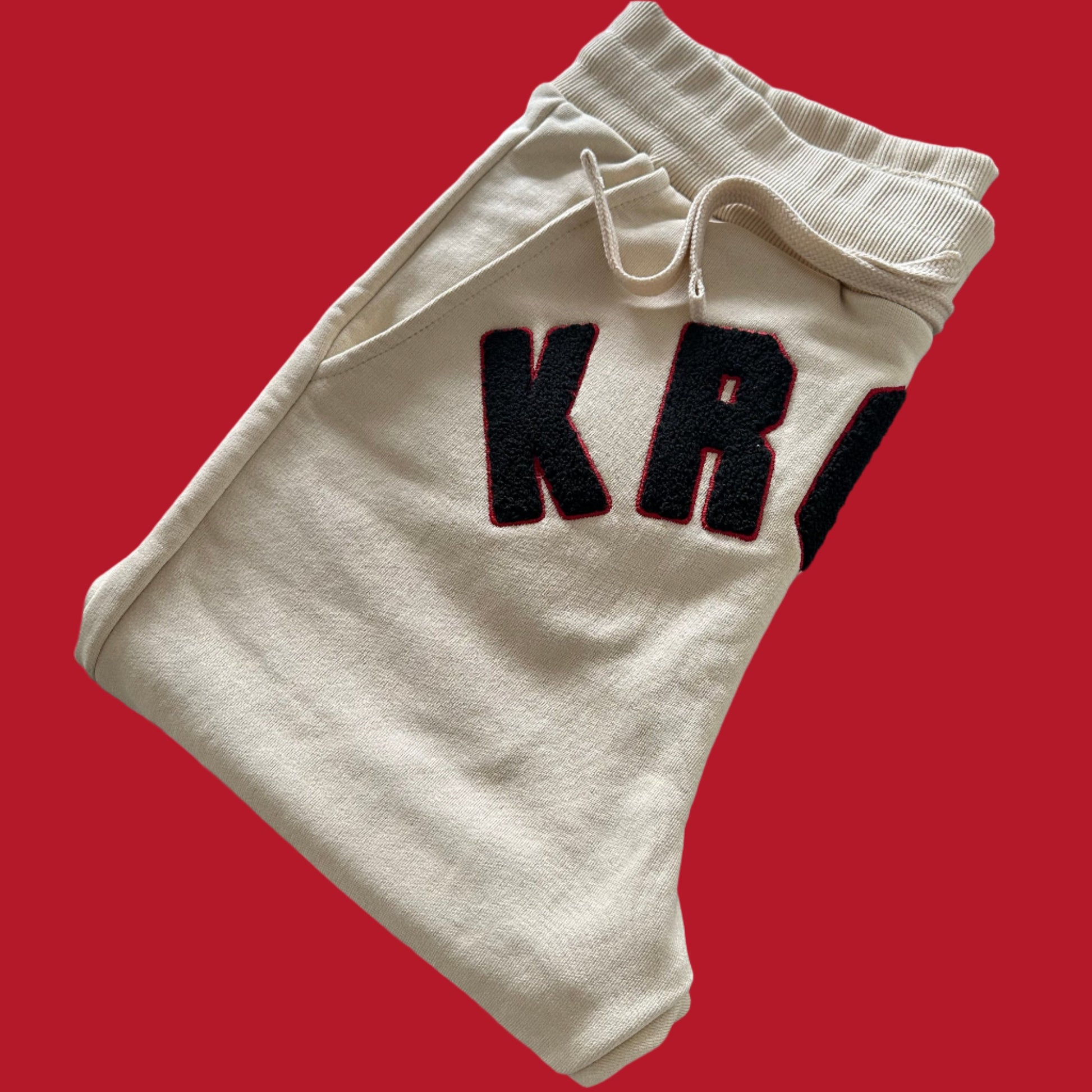 KRONK WAR Towelling Applique Joggers Athletic Fit Ecru