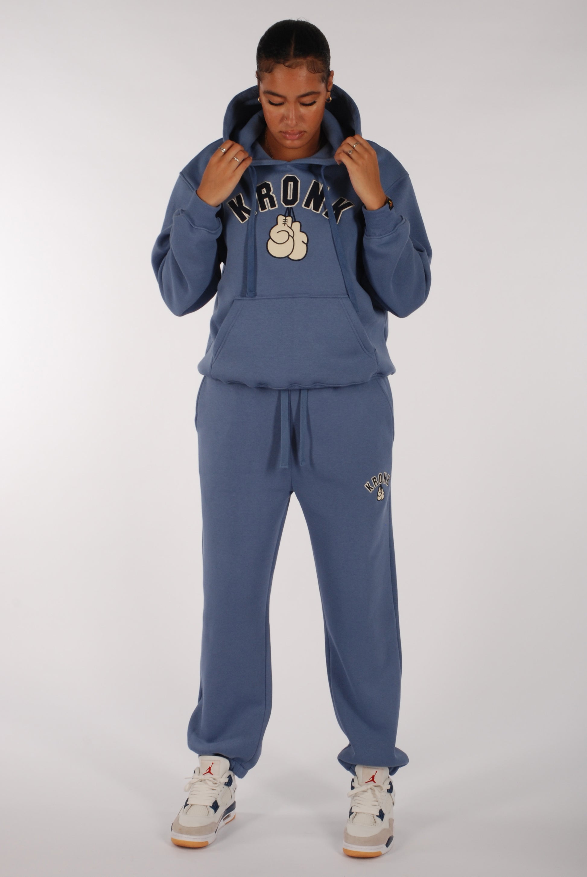 KRONKWOMEN Gloves Applique Hoodie Loose Fit Steel Blue
