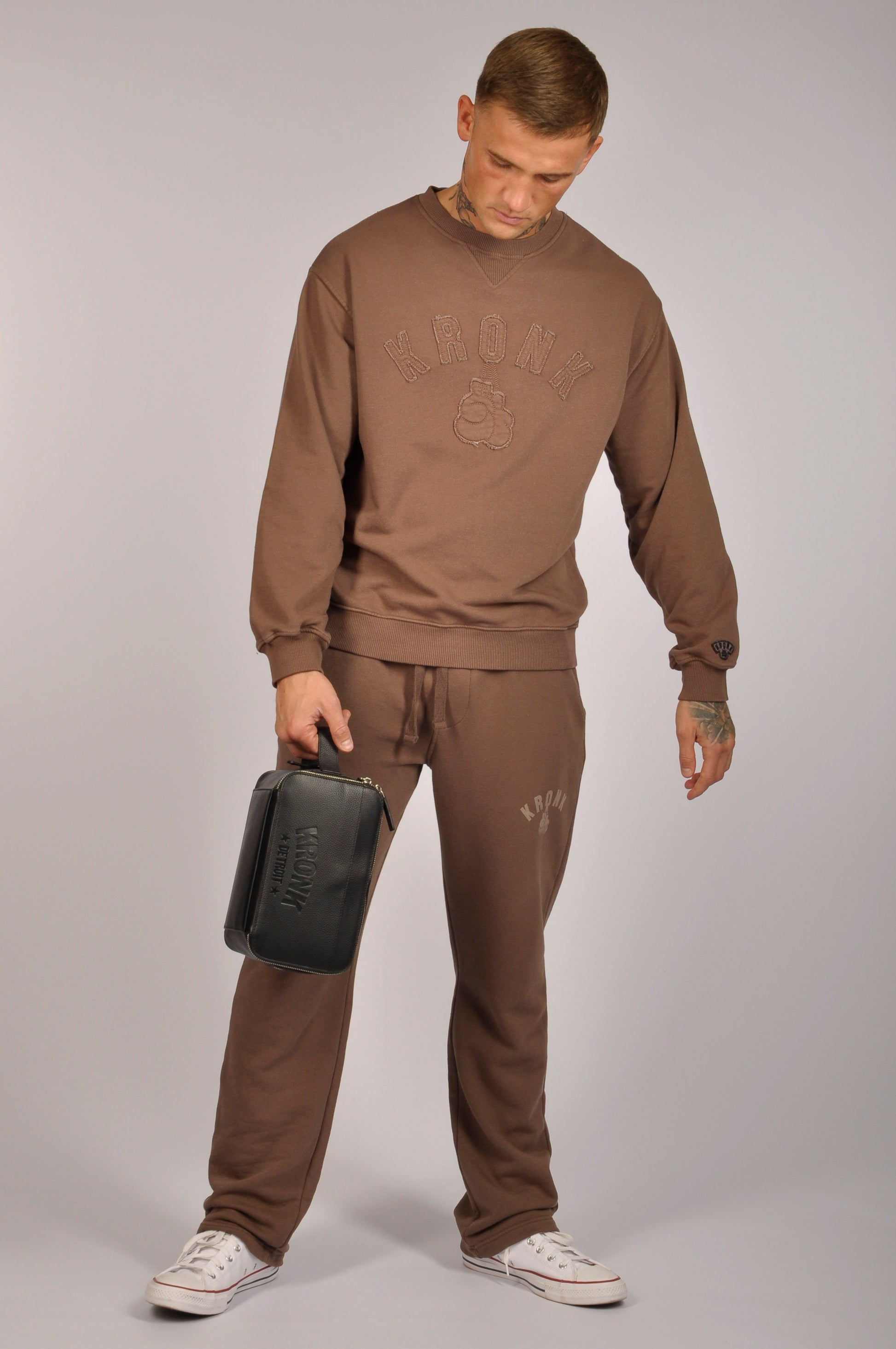 Beautifully crafted handmade black leather washbag with embossed Kronk Detroit logo.